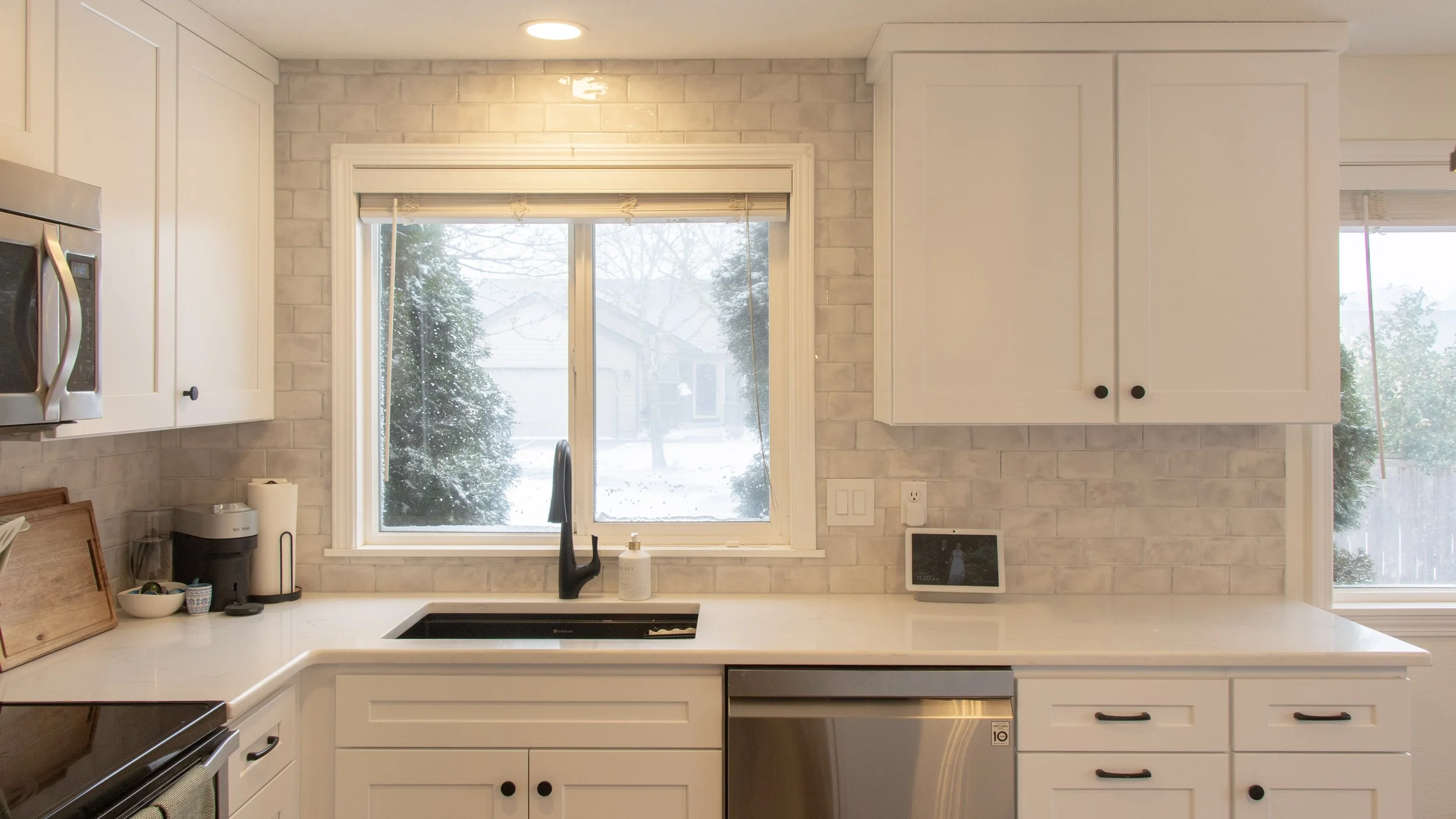 Backsplash materials reflect light differently. Glass tile or lighter stone backsplashes can brighten kitchens that receive limited natural light.